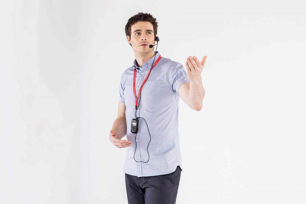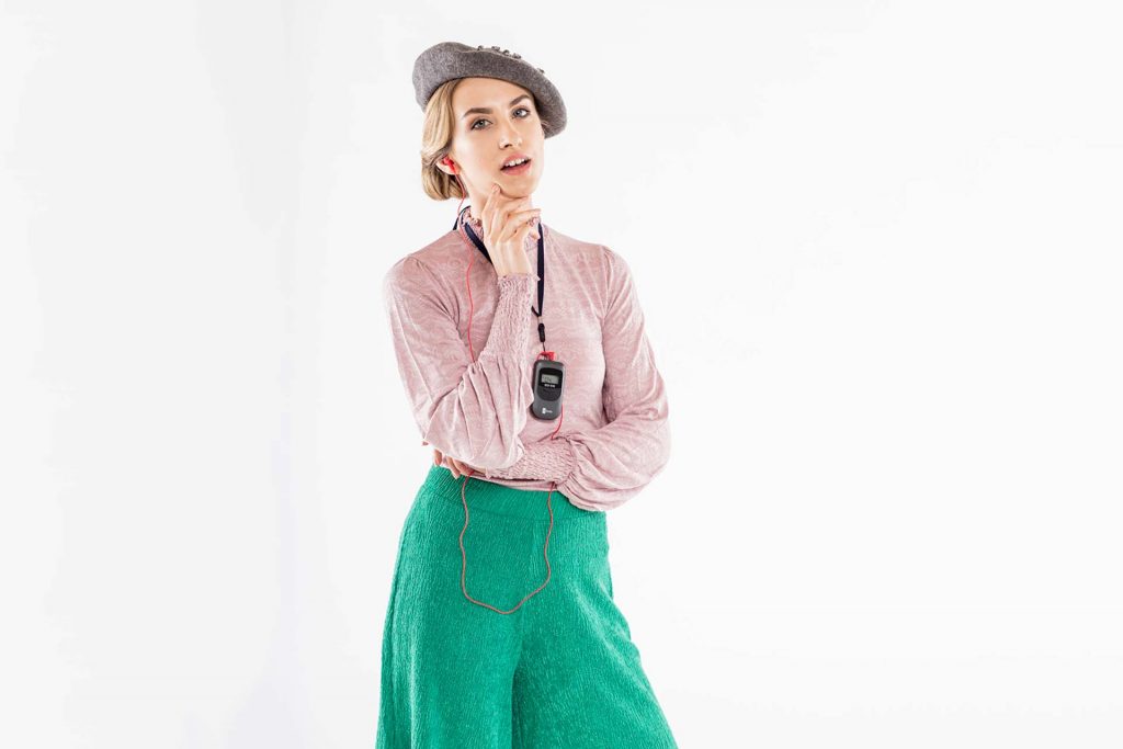 - posibilidad de conectar una fuente de audio (por ejemplo, reproductor de mp3) al transmisor y transmitir simultáneamente la voz y la música de fondo o mensajes grabados (lo que facilita el trabajo del guía turístico)