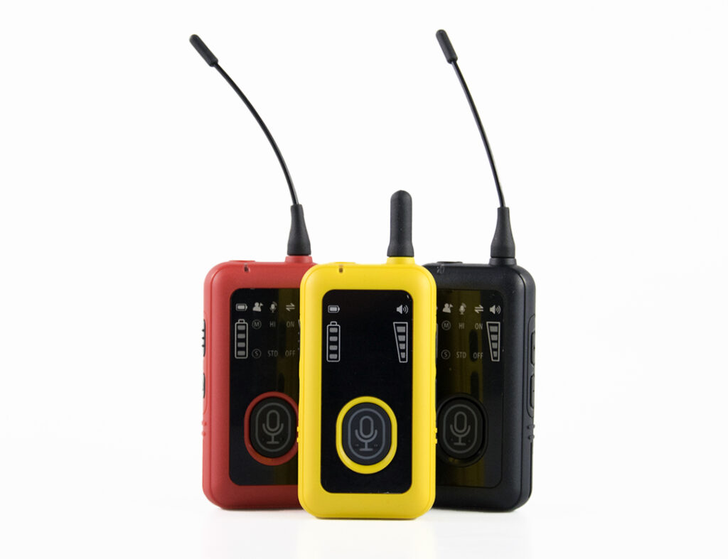 La colorida y original carcasa del sistema tourguide está fabricada con un material plástico duradero y fácil de desinfectar. Los receptores y transmisores no tienen pantalla, lo que los hace menos susceptibles a sufrir daños. Los LED intuitivos de los dispositivos indican el nivel de carga de la batería y los iconos iluminados facilitan el uso del sistema.