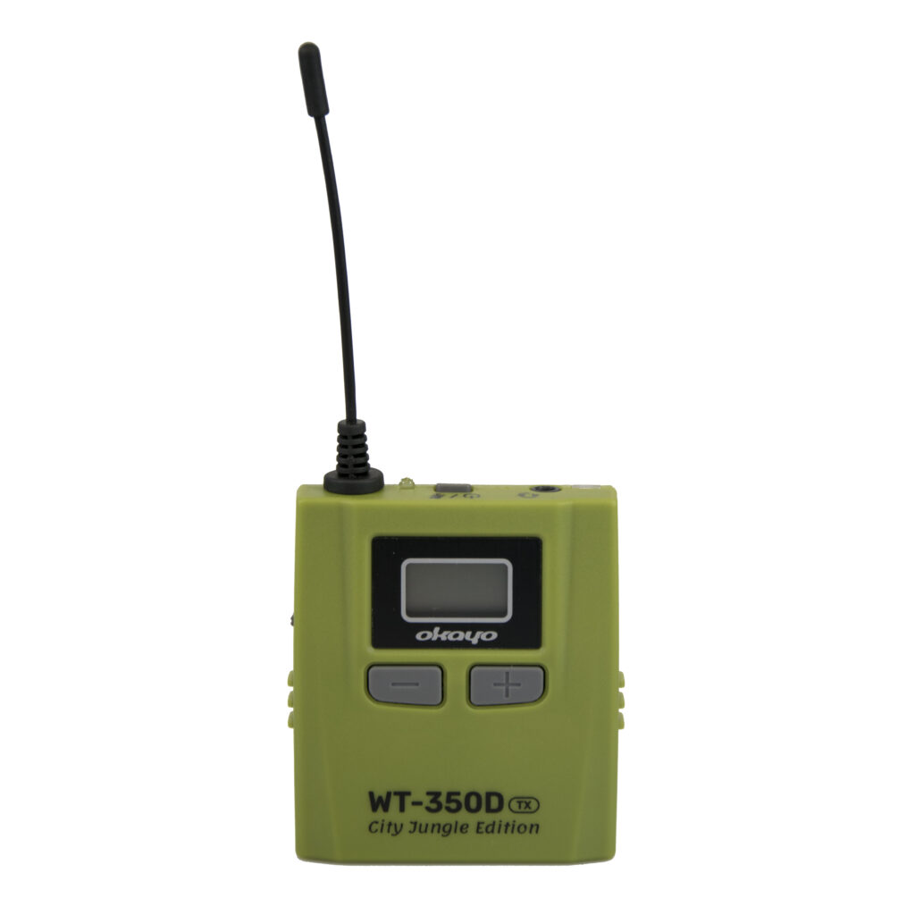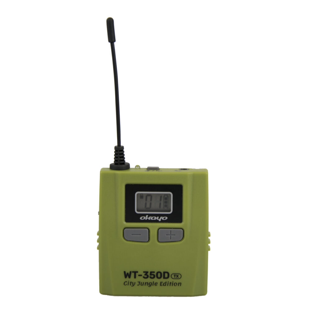 El Okayo WT-350D City Jungle Edition tiene una carcasa sólida y resistente a daños. Garantiza una apariencia estética y durabilidad, al tiempo que pesa sólo 65 g con batería. El modelo está disponible en colores tenues: verde (transmisor) y amarillo (receptor), lo que le da un toque urbano único. Nuestro último sistema tourguide es una combinación perfecta de modernidad y funcionalidad.